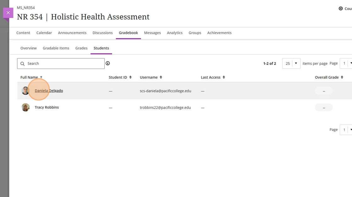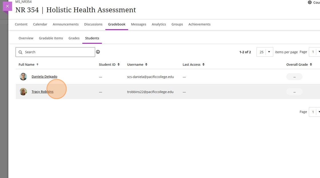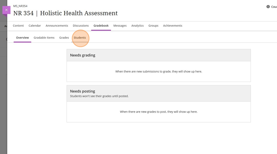Once inside the "Gradebook" tab, click on the "Students" tab.